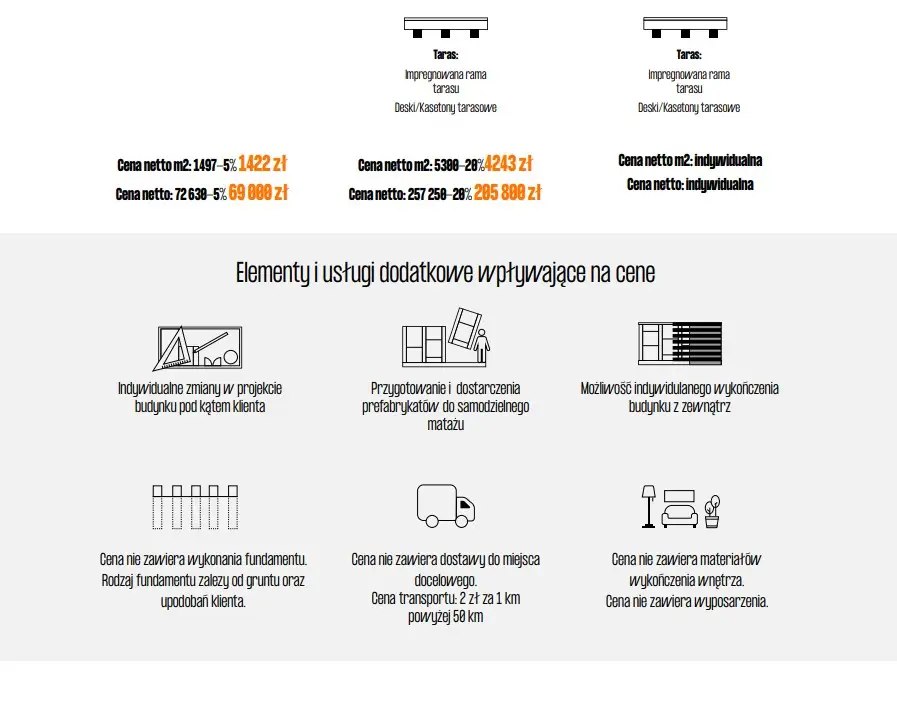 Dom został zaprojektowany z troską zarówno o ludzi, jak i o środowisko. Dzięki wykorzystaniu materiałów z odzysku i surowców odnawialnych, w połączeniu z nowoczesną technologią prefabrykacji, udało nam się zminimalizować ślad węglowy bez kompromisów w jakości. Każdy detal świadczy o rzemiośle  od czystych linii architektonicznych po ciepłe, naturalne wykończenia, które nadają przestrzeni wyjątkowy charakter.